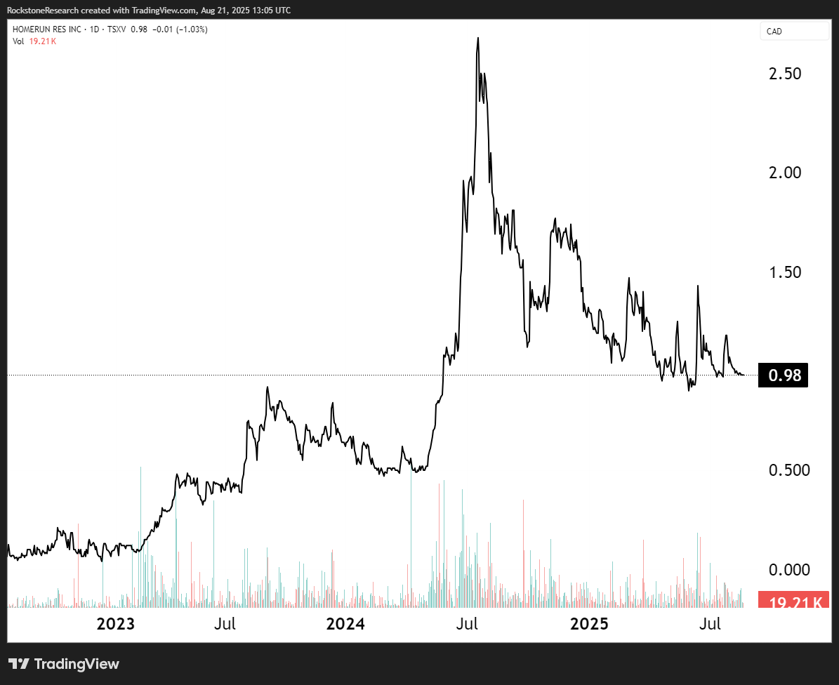 Disclosure of Interest and Advisory Cautions: Nothing in this report should be construed as a solicitation to buy or sell any securities mentioned. Rockstone, its owners and the author of this report are not registered broker-dealers or financial advisors. Before investing in any securities, you should consult with your financial advisor and a registered broker-dealer. Never make an investment based solely on what you read in an online or printed report, including Rockstone’s report, especially if the investment involves a small, thinly-traded company that isn’t well known. The author of this report, Stephan Bogner, is paid by Homerun Resources Inc. The author also owns equity of Homerun and thus will also profit from volume and price appreciation of the stock. Thus, multiple conflicts of interests exist. Therefore, the information provided in this report should not be construed as a financial analysis or recommendation but as an advertisement. Rockstone’s and the author’s views and opinions regarding the companies that are featured in the reports are the author‘s own views and are based on information that was received or found in the public domain, which is assumed to be reliable. Rockstone and the author have not undertaken independent due diligence of the information received or found in the public domain. Rockstone and the author of this report do not guarantee the accuracy, completeness, or usefulness of any content of this report, nor its fitness for any particular purpose. Lastly, Rockstone and the author do not guarantee that any of the companies mentioned in the reports will perform as expected, and any comparisons that were made to other companies may not be valid or come into effect. Please read the entire Disclaimer carefully. If you do not agree to all of the Disclaimer, do not access this website or any of its pages including this report in form of a PDF. By using this website and/or report, and whether or not you actually read the Disclaimer, you are deemed to have accepted it. Information provided is educational and general in nature. Data, tables, figures and pictures, if not labeled or hyperlinked otherwise, have been obtained from Stockwatch.com, Homerun Resources Inc. and the public domain.